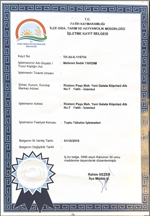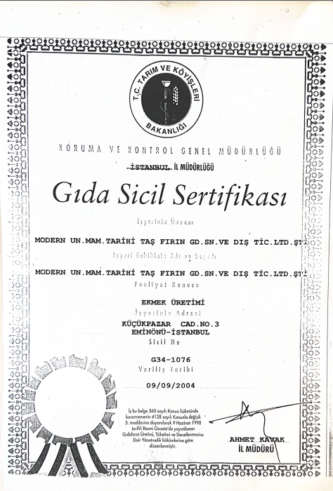 Gıda Sicil Belgesi