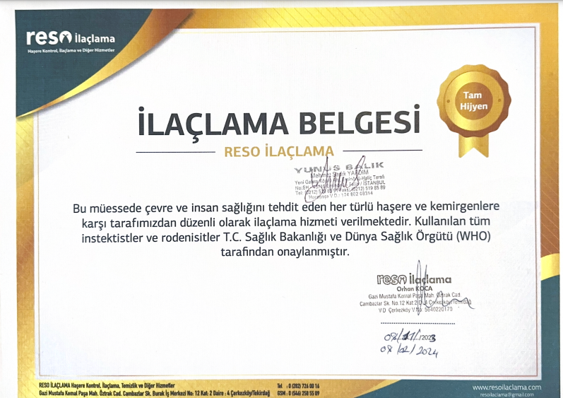 İlaçlama Belgesi